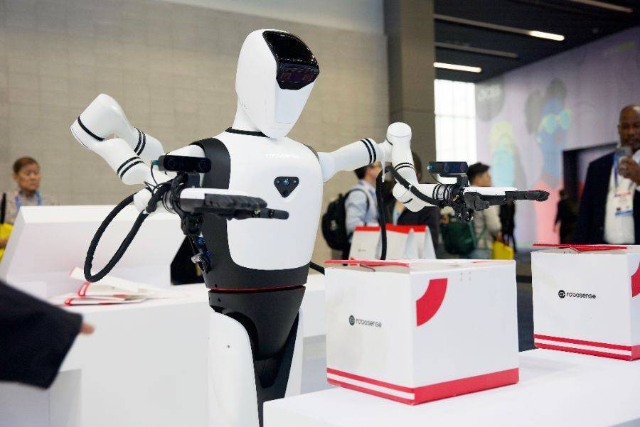 (2026CES展上,速腾聚创展出机器人“配送小哥”)