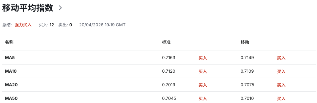 总体而言,澳币兑美元短期处于技术面震荡博弈阶段,布林带收窄与RSI中性指标均指向市场正等待方向突破。若地缘局势没有进一步恶化,技术面仍略微偏向多头;但若美伊谈判彻底破裂引发新一轮避险潮,则澳币可能再次测试0.7110甚至更低。
