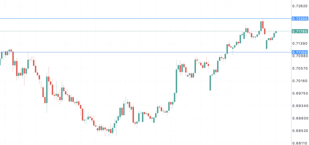 周一,因美伊停火协议岌岌可危、第二轮和谈前景陷入僵局,避险情绪有所升温。澳币兑美元开盘跳空,一度触及日内低点0.7113,随后市场情绪逐步修复,汇率迎来反弹回升。尽管特朗普方面证实,由万斯率领的美方团队即将抵达伊斯兰堡,为新一轮美伊谈判做筹备,但伊朗参与谈判的意愿依旧未明。此前市场流传的伊朗“愿意出席”谈判的消息多次被修正,双方谈判进程在最后关头始终深陷不确定性之中。